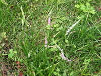 生育場所:芝生、道路脇の花壇など 特徴及び名前の由来:桃色の花がねじれて咲く。
