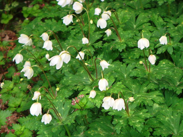 ニリンソウ 曇天時は花が下を向く
