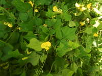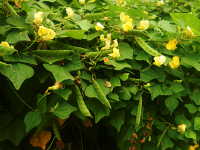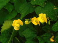 | 多年草 つる性植物 花期:8月〜9月 生育場所:野原などで日当たりの良い所 特徴:アズキに似た黄色い花であるが、竜骨弁がねじれ、左の翼弁とともに上を向く。豆果は広線形で、アズキやヤブツルアズキのように細線形ではない。 名前の由来:で生育するアズキ。 |