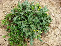 | 越年草又は1年草 草丈:10cm〜30cm 花期:3月〜8月 生育場所:畑、道ばたなど 特徴:葉は細長く、切れ込みが多い。 花は黄色の小輪で多数付く。 名前の由来:「ボロギク」は綿毛がぼろくずのように見える菊という意味。 |