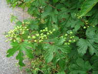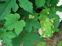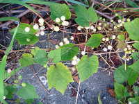特徴:ブドウに似た葉で、つるが他の植物に絡み付く。花はヤブガラシに似ている。