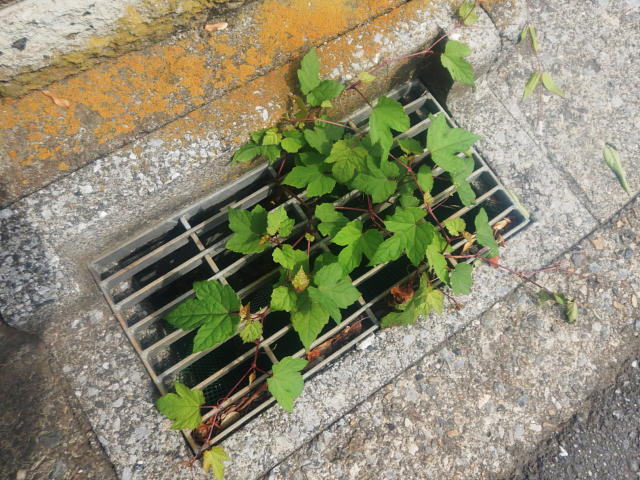 ノブドウ 側溝に生える(6月上旬)