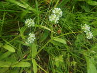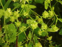 生育場所:道ばた、土手など 特徴:球状の花序と長楕円形で対生の葉