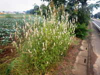| 1年草 草丈:30cm〜100cm 花期:8月〜11月 生育場所:荒れ地、休耕地、道ばたなど 特徴:葉は長楕円形で、ロウソクの炎のような形の大型で美しい薄桃色の花穂が多数つく。 名前の由来:熱帯アジアに自生する種が園芸品種「セロシア」として輸入され、関東地方以西で野生化した。ケイトウ属の種が野生化したものであるため、「ノゲイトウ」。 |