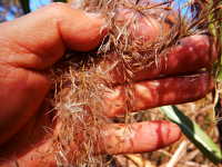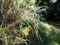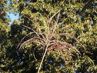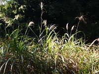 | 多年草 草丈:150cm〜200cm 花期:9月〜10月 生育場所:河畔、用水路の脇など 特徴:大型雑草で、花穂は大きく、銀白色の毛がきれい。ススキに似るが、ススキの花穂は黄金色。 名前の由来:「招く(おぐ)」から転じたという説が有力。風になびく穂が魂を招き寄せるように見えたことが由来。 |