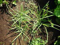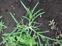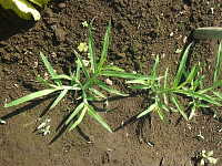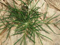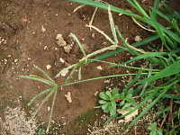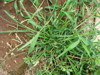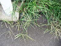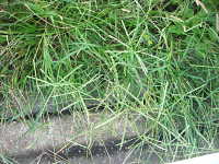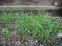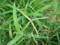 特徴:茎は扁平で踏みつけに強い。メヒシバに似るが、花穂の幅が広い。