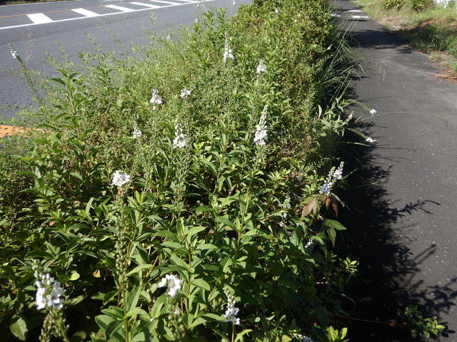オカトラノオ 歩道のツツジの植栽から花穂が飛び出す(9月下旬)