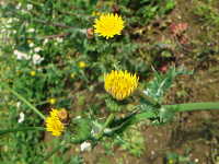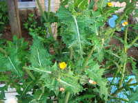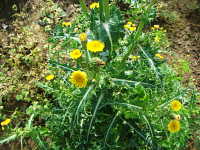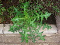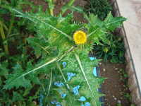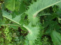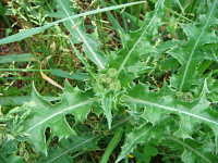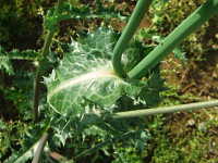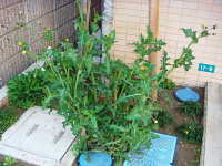 | 越年草 草丈:80cm〜120cm 花期:4月〜5月 生育場所:畑、空き地など 特徴:葉の切れ込みが深く、葉の縁は堅いトゲ状で、触ると痛い。 名前の由来:「 |