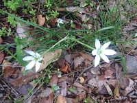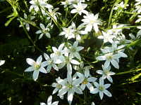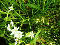 特徴:6弁の白い花が多数咲き、花弁の裏は緑色。葉は線状。有毒。