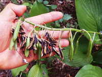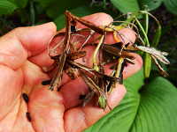 | 多年草 草丈:50cm〜100cm 花期:6月〜7月 生育場所:山地の草地や林縁など 特徴:薄紫色の筒状の花が横向きに開く。葉は先の尖った卵形で大きい。 名前の由来:蕾の形が橋の欄干につけられる |