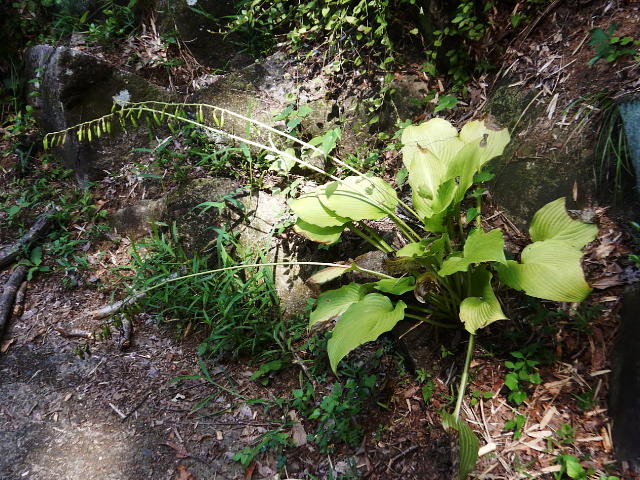オオバギボウシ 石垣に生えた大株(8月中旬)
