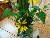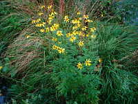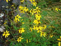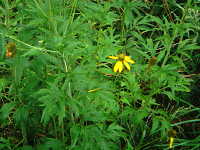 | 多年草 草丈:100cm〜250cm 花期:8月 生育場所:河川敷、荒れ地など 特徴:大きい黄色い花で、黄緑色の筒状花が目立つ。 名前の由来:「オオ」は株全体が大きいこと、「ハンゴンソウ」は強い香りがして、死者を蘇らせるという意味の |