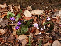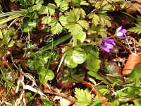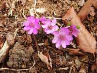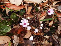 | 多年草 草丈:10cm〜15cm 花期:3月〜4月 生育場所:落葉広葉樹の下など 特徴:花は桃色、紫色、薄桃色、白色など変化に富む。葉は3浅裂の三角形の特異的な形。 名前の由来:葉が三角形であるため「ミスミソウ」。別種のミスミソウより花や葉が大きいため「オオ」。 |
