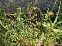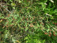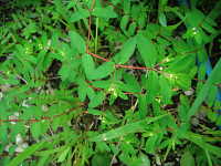 生育場所:畑、道ばたなど 特徴:長さ25m程度の楕円形の葉と赤い茎。