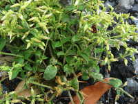 特徴:葉が楕円形で、株全体に細毛があり、べとつく。花が多数付き、傘状となる。