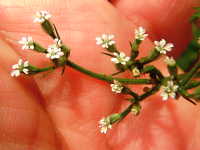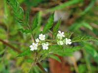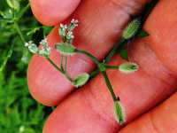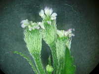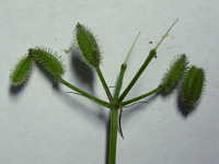 | 越年草 草丈:30cm〜50cm 花期:5月 生育場所:空き地、道ばたなど 特徴:羽状の切れ込みのある三角葉。白い小花と俵型の果実。果実や茎は紫色を帯びる。 名前の由来:果実に小さいトゲがあり、 |