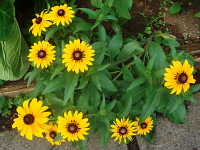 特徴:中心が茶褐色の黄色い大きな花。別名は