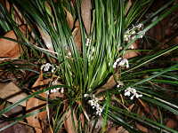 | 多年草 草丈:20cm(小型のタマリュウは10cm) 花期:7月〜8月 生育場所:道端、山野の樹木下、野原など 特徴:幅2〜3mmの細い葉が多数伸びる。古くからグランドカバーに使われている。 名前の由来:細く伸びた葉が竜の口髭を連想させるため。 |