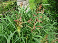 特徴:大型雑草で、トウモロコシの雄花に似た大きな穂を付ける。花期が長い。