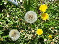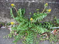 特徴:黄色い花と丸い綿毛が目立つ。セイヨウタンポポは総包(ガクのように花を包む部分)外片が反り返る。