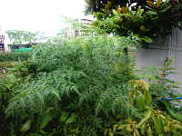 | 樹木 樹高:7〜10m 花期:5月〜6月 生育場所:道端、空き地など 特徴:葉が2〜3回羽状複葉で、生長が大変速い。若い樹皮は楕円形の白い皮目が目立つ。 名前の由来:果実が数珠のように付くため、千珠(せんだま)から転訛した。 参考:伊豆半島以西の暖地で生育する樹木であるが、温暖化の影響で関東でも見られるようになった。 |