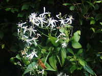 特徴:きれいな白花が多数咲き、葉は鋸歯がない楕円形の小葉からなる。