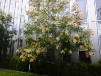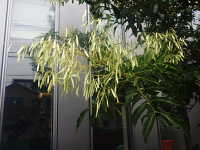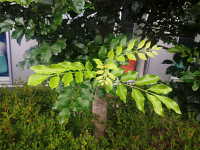 | 沖縄県原産の半常緑高木 樹高:10m〜15m 花期:6月〜7月(雌雄異株) 生育場所:庭木、公園木の周囲など 特徴:葉は羽状複葉で肉厚。白い果実が目立つ。生長が速い樹木。 名前の由来:沖縄県などの島に生息するトネリコ。「トネリコ」は滑りやすくするため樹液を「戸に塗る木」という意味。 その他:飛散した種子が植え込みや道路の隙間で芽吹きやすいため、東京都では緑地における除去対象としている。 |