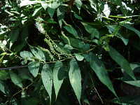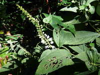| 多年草 草丈:40cm〜70cm 花期:8月〜10月 生育場所:山野など 特徴:花柄のある白い花が房状に並ぶ。葉は長楕円形で細かい鋸歯があり対生する。 名前の由来:冬になると枯れた茎に「 |