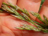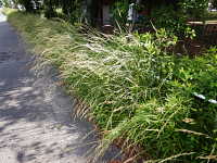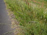 | 多年草 草丈:80cm〜150cm 花期:5月〜8月 生育場所:道路の路肩、河川敷、牧草地など 特徴:茎は密に立ち上がる。黒紫色の小穂を多数つける。根が強靱なため、砂防工事に利用される。別名:ウィーピングラブグラス 名前の由来:細い葉が髪の毛のように垂れて広がるため。 |