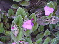 特徴:ムラサキツユクサによく似た花で、茎葉は白い柔毛で覆われる。園芸種が野生化。