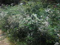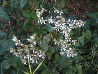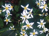 | 多年草 草丈:50cm〜150cm 花期:8月〜10月 生育場所:林縁、山地の乾いた草地や道ばたなど 特徴:白い花を多数咲かせ、舌状花(白い花びらがつく)は5〜7枚と少ない。草丈が高いので、群落は特に美しい。 名前の由来:高山地帯を中心に自生する剛健で美しい多年草であるため、「白い山の菊」。 |