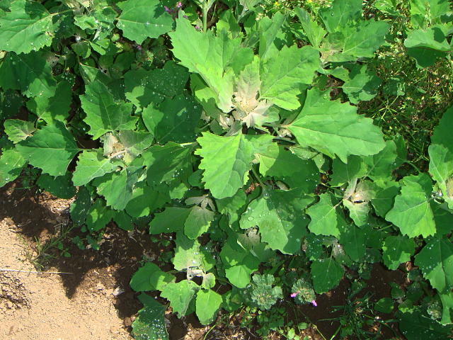 シロザ 葉は三角形で白い粉が付く