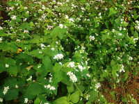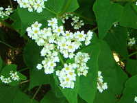 生育場所:ソバの収獲跡地 特徴:ハート型の葉で、白い花が多数咲く。三角卵形の果実を付ける。