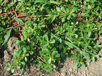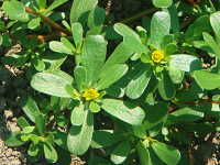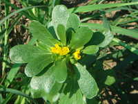 生育場所:畑、道ばたなど 特徴:楕円形で肉厚な葉と黄色い花。