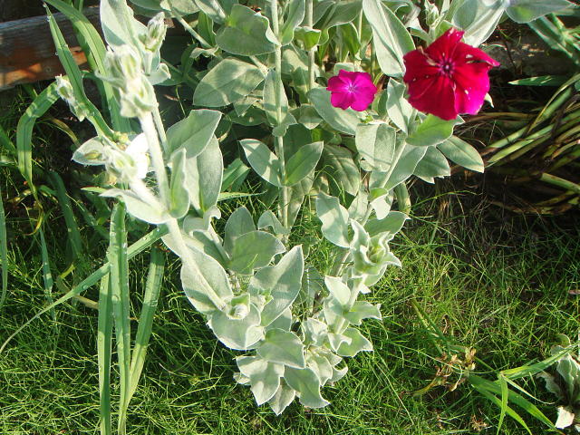 スイセンノウ 葉や茎が白い細毛で覆われている