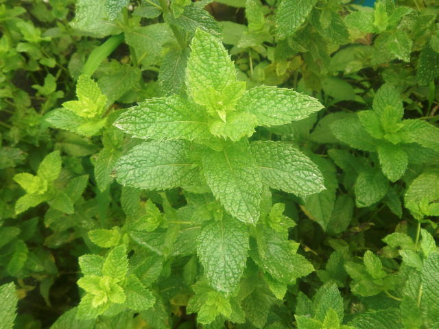 スペアミント 葉は槍の穂先の形でしわが多い