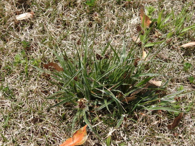 スズメノヤリ 茎の先端に赤褐色の頭花