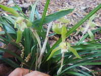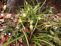 | 多年草 草丈:10cm〜30cm 花期:3月〜4月 生育場所:乾燥した落葉樹林内など 特徴:葉は線形でざらつく。花は薄黄色の細い花弁で、唇弁に紅色の斑紋がある。 名前の由来:春に花が咲く「ラン」。 参考:土壌中に根を広げる地生蘭であり、自分の葉による光合成のほか、菌根共生を行う腐生菌から必要な栄養素を得て成長している。 |