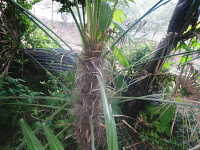 特徴:熊手状の大きい葉を付け、幹は分枝せず垂直に伸びる。幹を繊維質が包み、シュロ皮として利用される。生長は遅い。