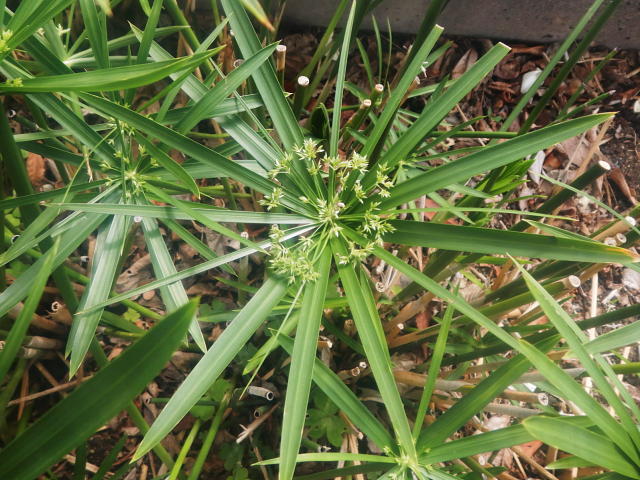 シュロガヤツリ 蕾状の花序(4月下旬)