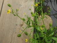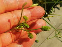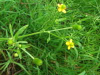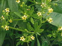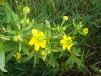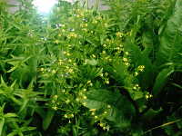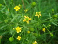 生育場所:田、浅い水辺など 特徴:黄色い花の中央に緑色の
