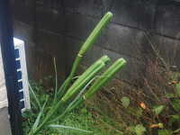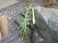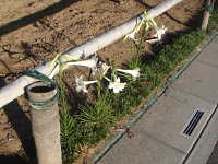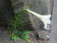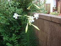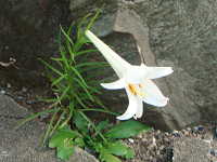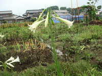 特徴:テッポウユリによく似た白い花が咲くが、葉が細い。園芸品種が野生化。