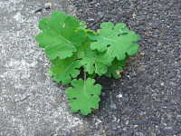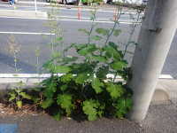 特徴:大型雑草で、丸くやや切込みのある葉を持つ。花茎は長く白い花が目立つ。