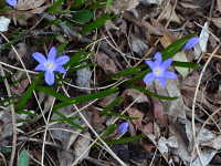特徴:星形の青いきれいな花と細長い葉。園芸種が野生化。白い花もある。
