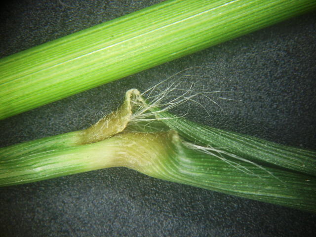 トダシバ 葉鞘には上向きの毛がある