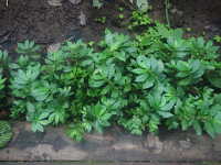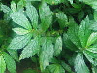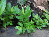 | 1年草 草丈:15cm〜20cm 花期:9月〜10月 生育場所:林際の道ばたなどで湿った場所 特徴:ヤツデに似た形で葉脈が目立つ葉。 名前の由来:「トキ」はときどき。「ホコリ」ははびこる。 |