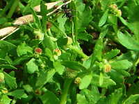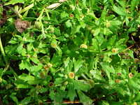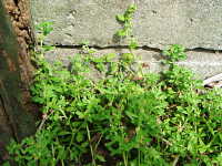 生育場所:道ばたなど 特徴:小さいくさび形の葉と丸い花を持ち、茎が伸びる。
