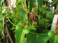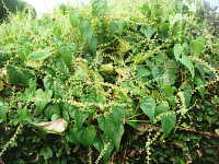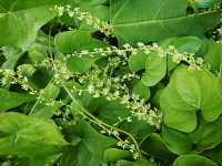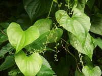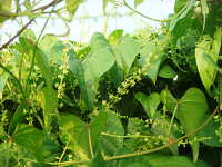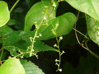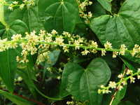 特徴:ハート型の葉と小さい白い花が多数付いた長い花穂。