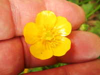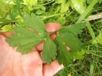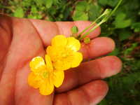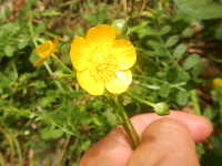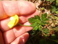 特徴:花びらは5弁で、大きく鮮やかな黄色の花で目立つ。下位葉は3深裂する。