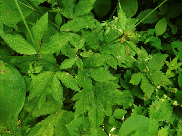 ウマノミツバ 葉は3全裂し、粗い鋸歯がある